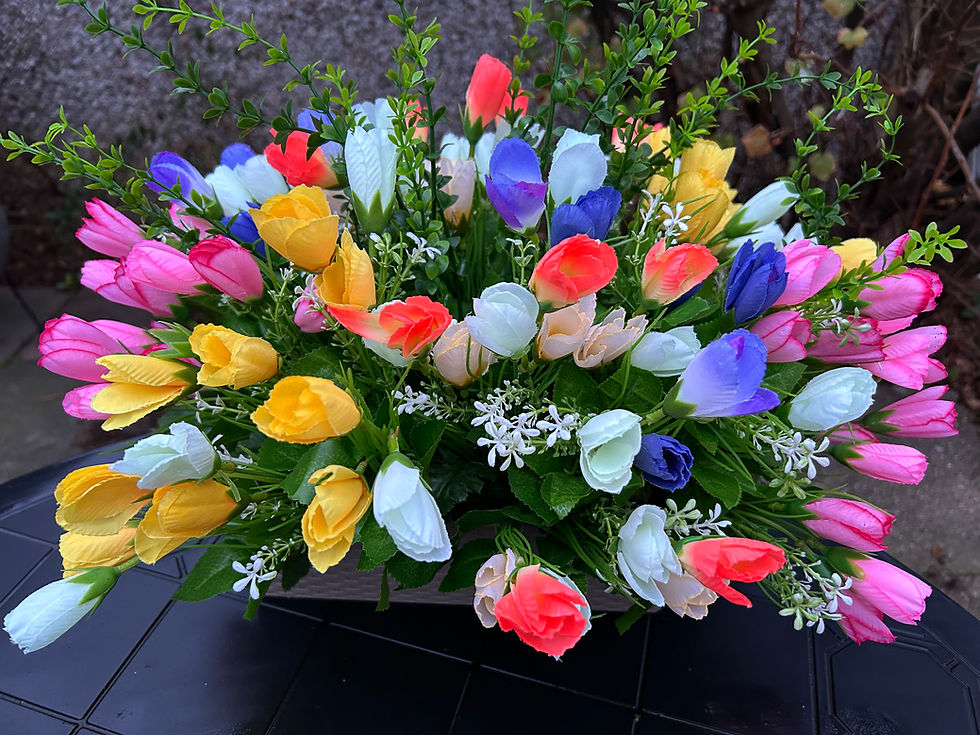 Attractive and realistic, Good mix of silk/artificial seasonal flowers and foliage will be used.